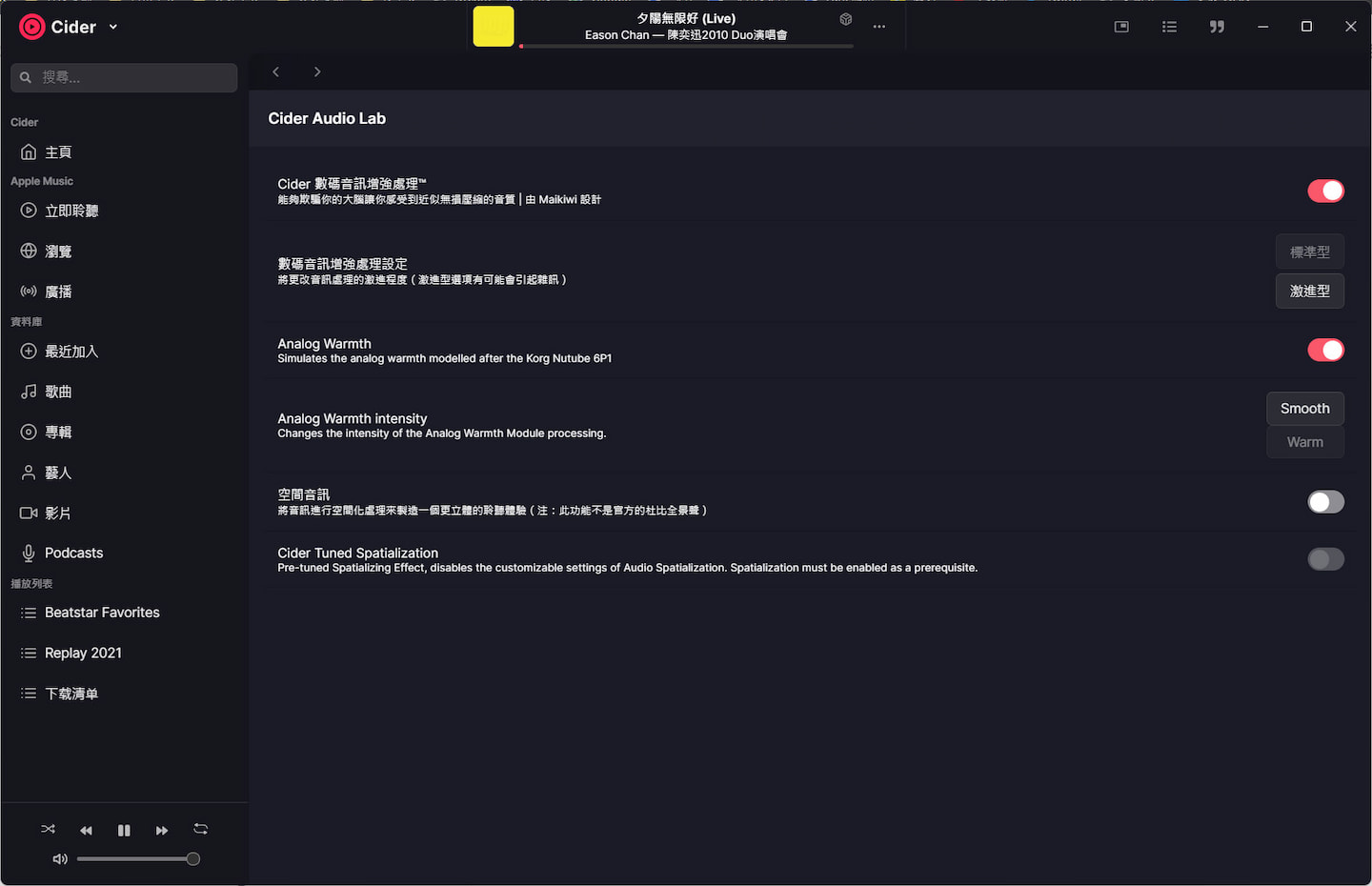 - Cider Adrenaline Processor —— 通过音频处理实现近似无损音质的效果;