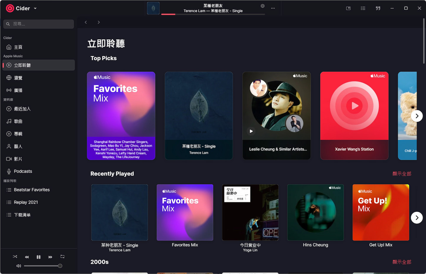 安装好 Cider 后,第一次打开需要登录 Apple 账户,因此需要提前订阅 Apple Music 服务。在 Cider 的主页,分为顶栏、左侧导航栏、浏览页面三部分,基本布局与 Apple Music 网页版相同。