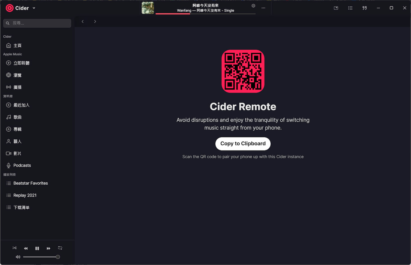 用户可以通过 iTunes Remote app 对电脑端的 Apple Music 与 iTunes 远程控制音乐的播放。Cider 也同样提供了类似功能。