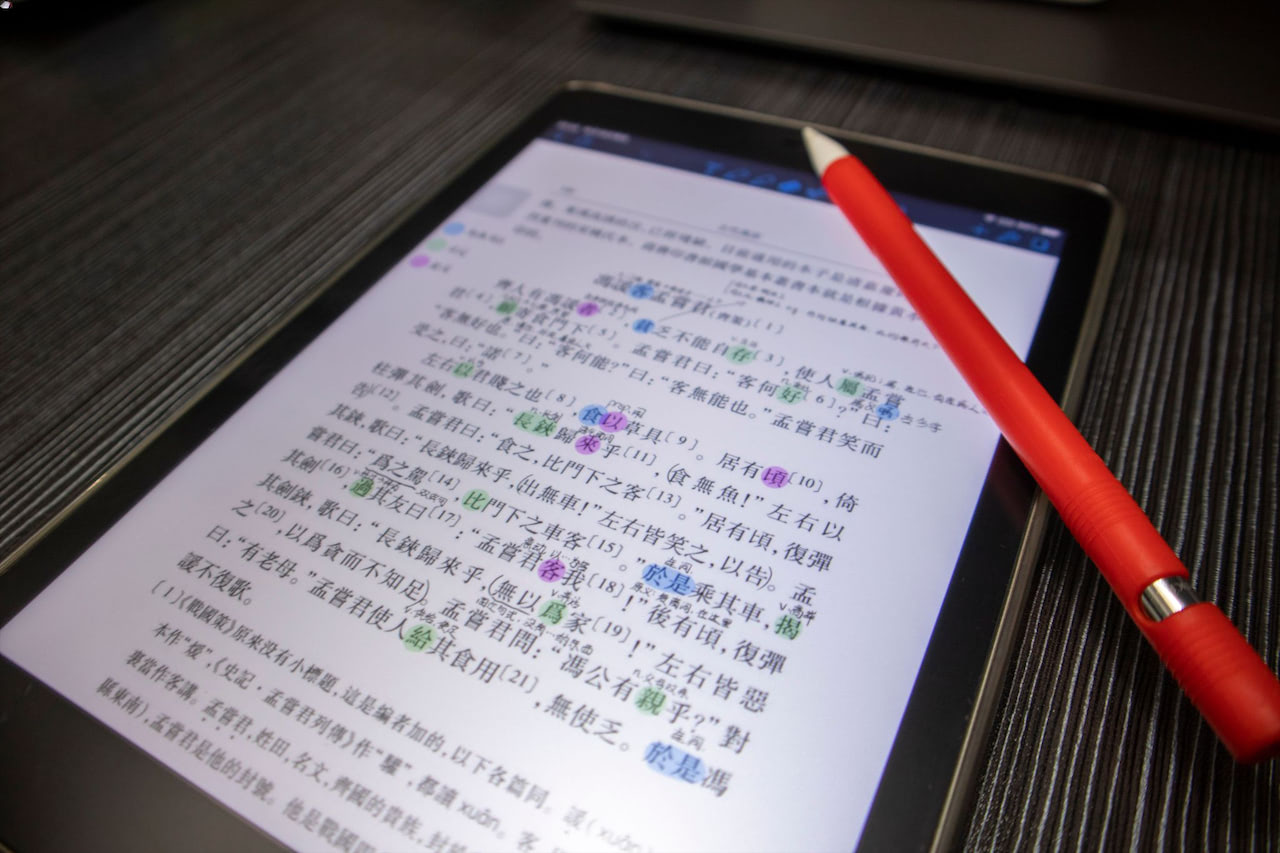 在学期开始时,我会将教材的电子版导入到 iPad 中。老师讲课时,幻灯上的重点可直接在书上标注,笔迹功能可以让在一旁补充笔记,两者的结合使你做笔记的速度不会落后于老师的讲课速度。